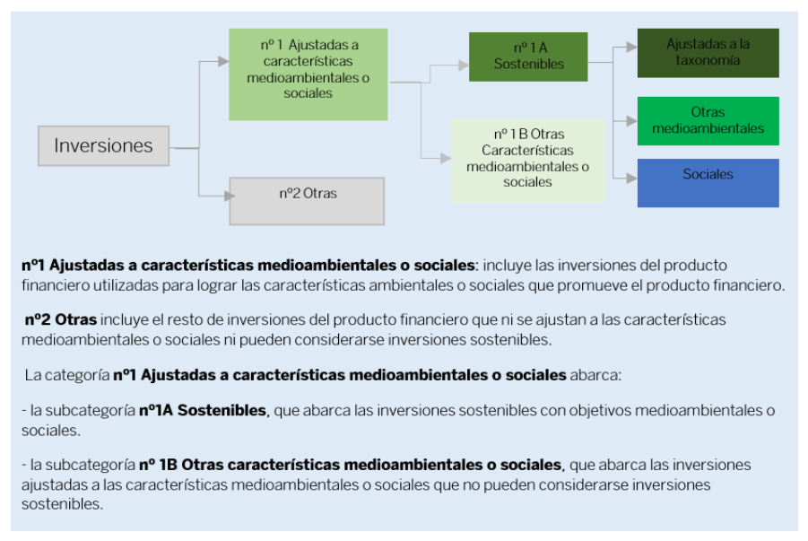 - En el caso de inversiones indirectas, invirtiendo exclusivamente en IIC financieras clasificadas como sostenibles según el Reglamento UE 2019/2088, bien porque se trate de IIC que promuevan características medioambientales o sociales (clasificadas como artículo 8 del citado Reglamento), o bien porque se trate de IIC que tengan como objetivo inversiones sostenibles (clasificadas como artículo 9 del citado Reglamento), siempre que estén alineadas con las características ASG promovidas por el Plan.
